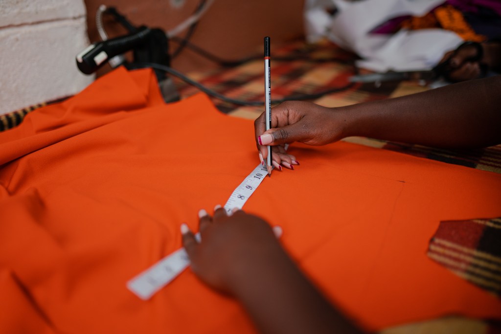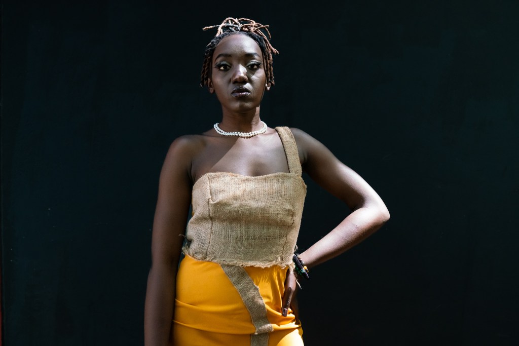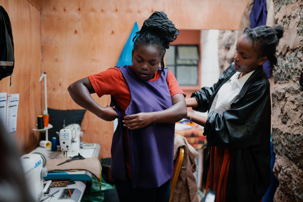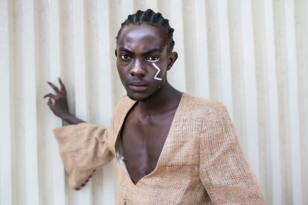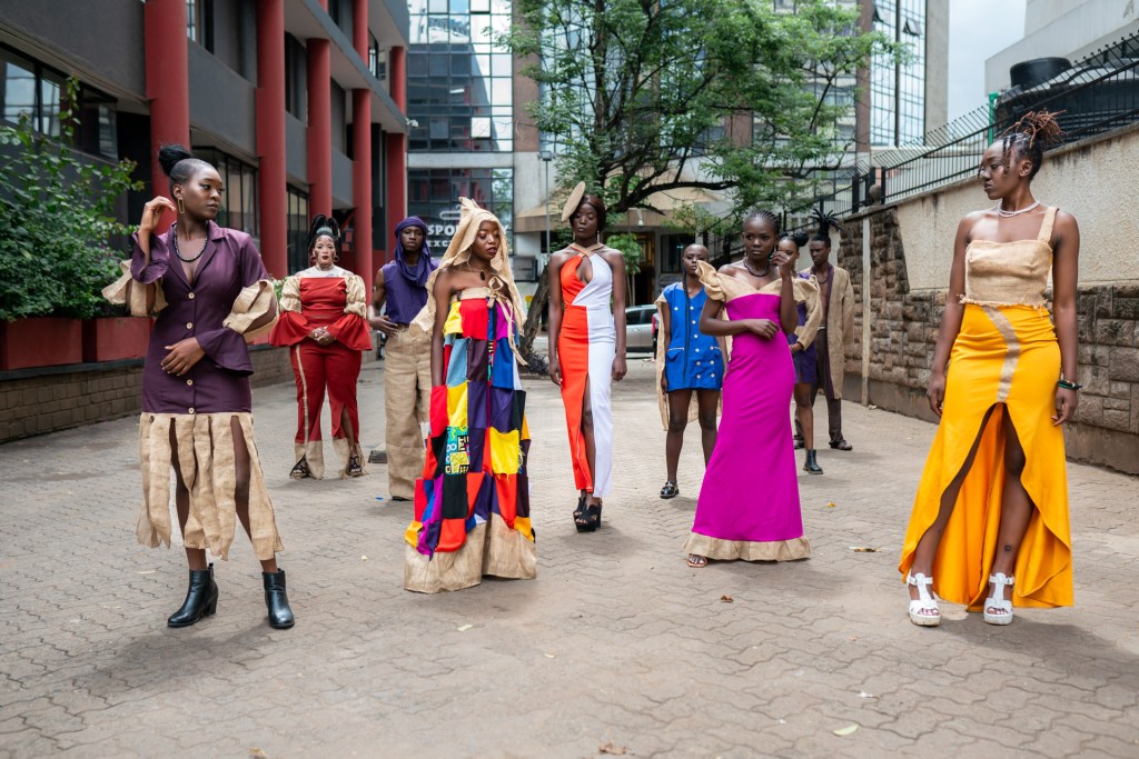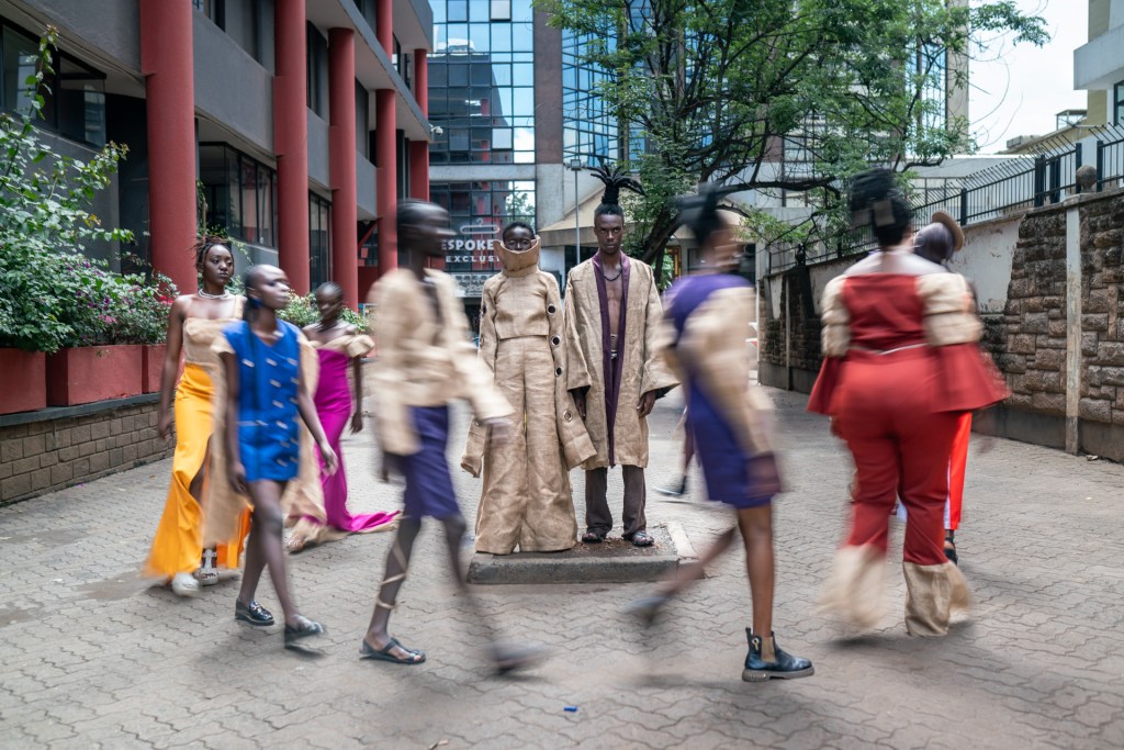 For Kibera Fashion Week, we chose “Gunia” sisal fabric, an eco-friendly material that aligns with our vision for sustainable fashion. “This moment is huge for me—my designs will be on a runway for the first time.”